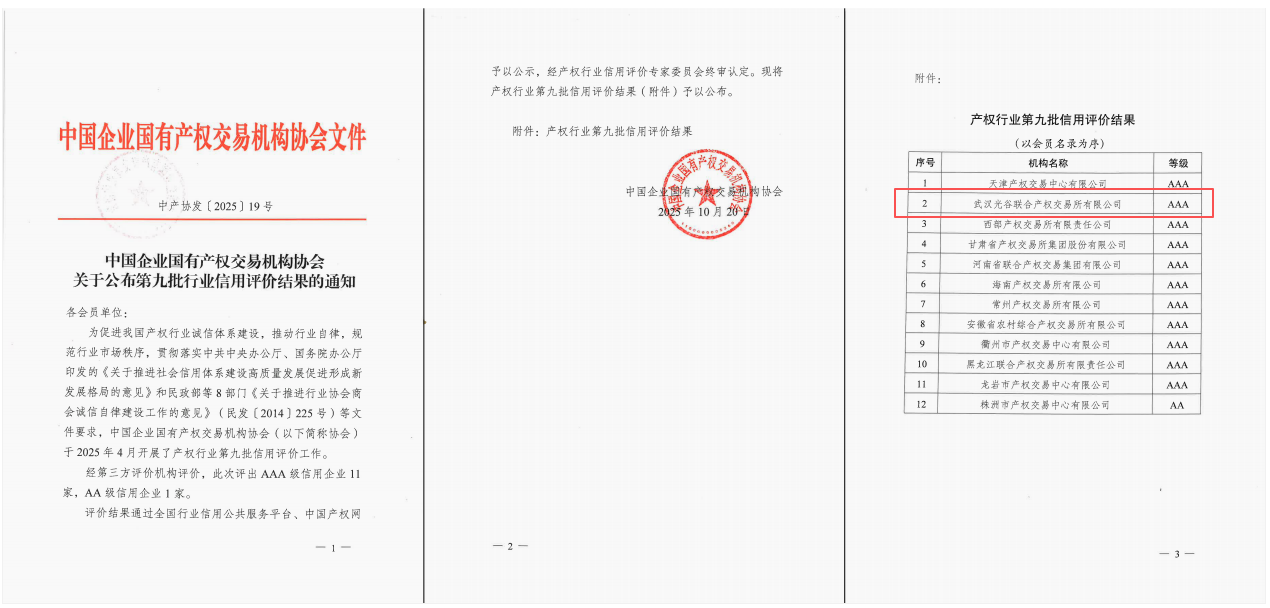 蝉联AAA级!光谷联交所信用评级再获 “金字招牌”