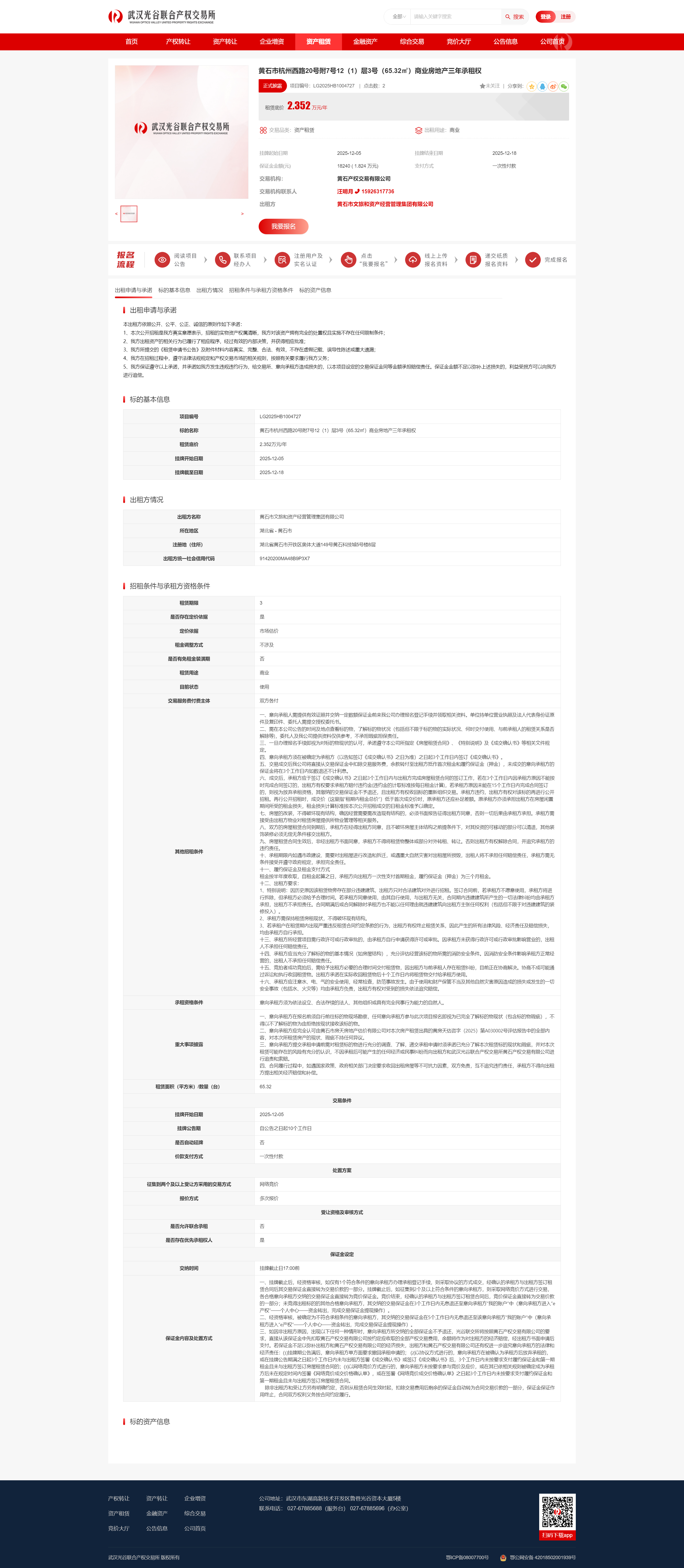 黄石市杭州西路20号附7号12(1)层3号(65.32㎡)商业房地产三年承租权