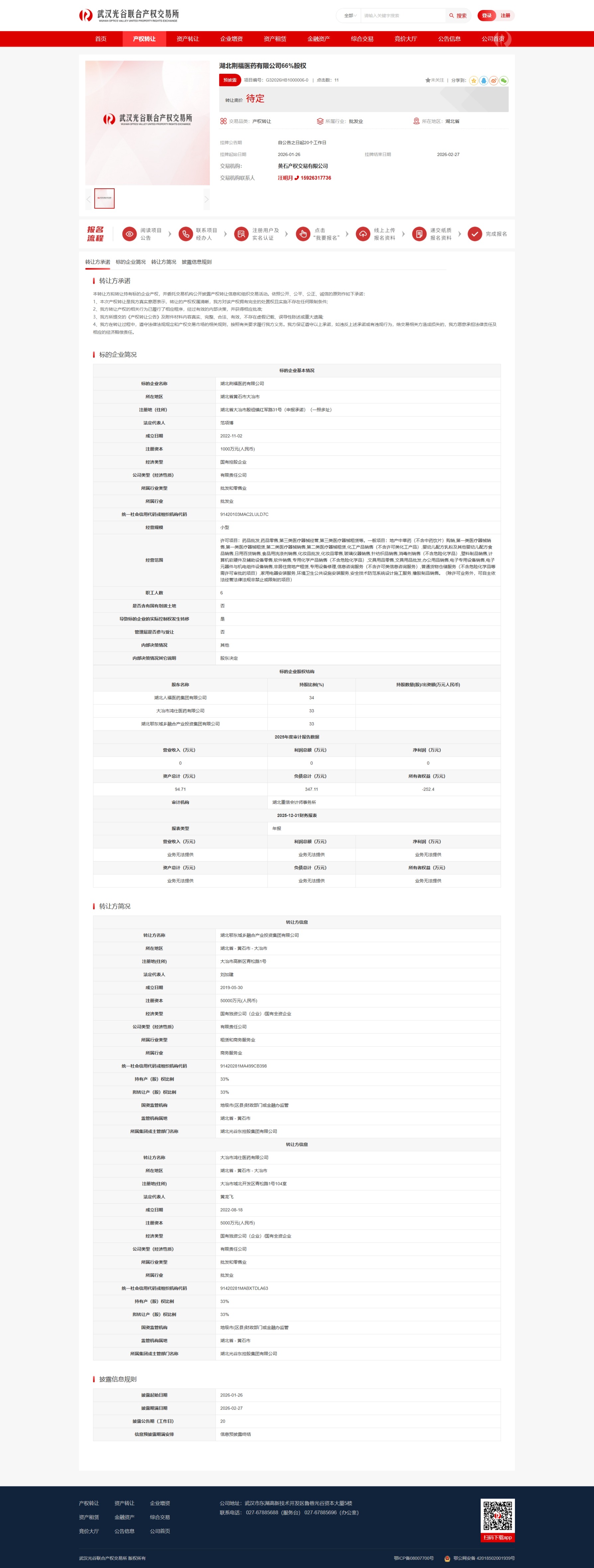 湖北荆福医药有限公司66%股权