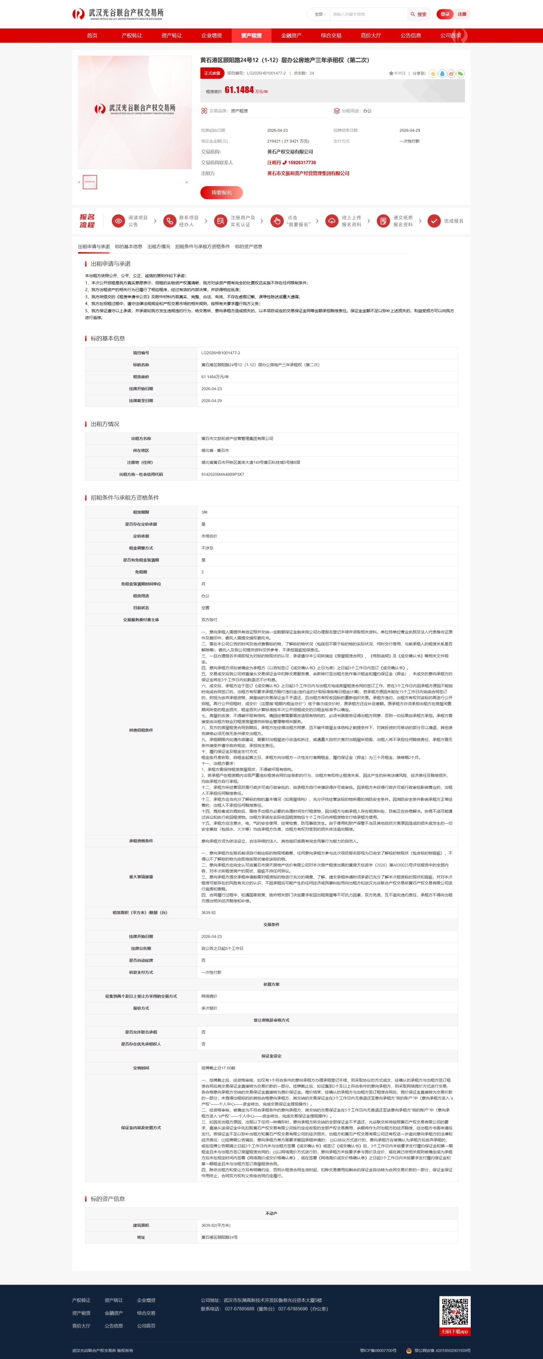 黄石港区颐阳路24号12(1-12)层办公房地产三年承租权(第二次)